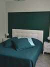 La chambre Emeraude est située au rez-de-chaussée, avec un lit en 160 x 200, télévision, wifi, sanitaires privatifs (salle d’eau équipée de douche, lavabo, toilette privée, sèche-cheveux).